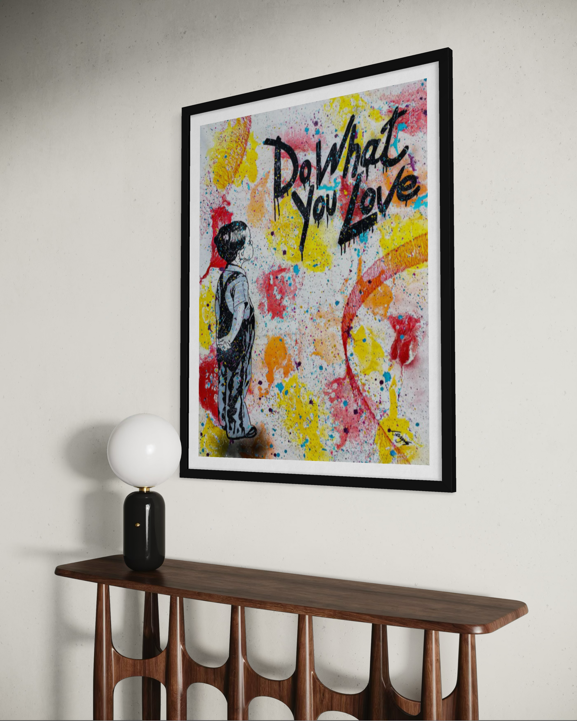 - Giclée originale d’une œuvre graffiti réalisée à la bombe, en techniques mixtes, avec un élément secret d’amour sur coton