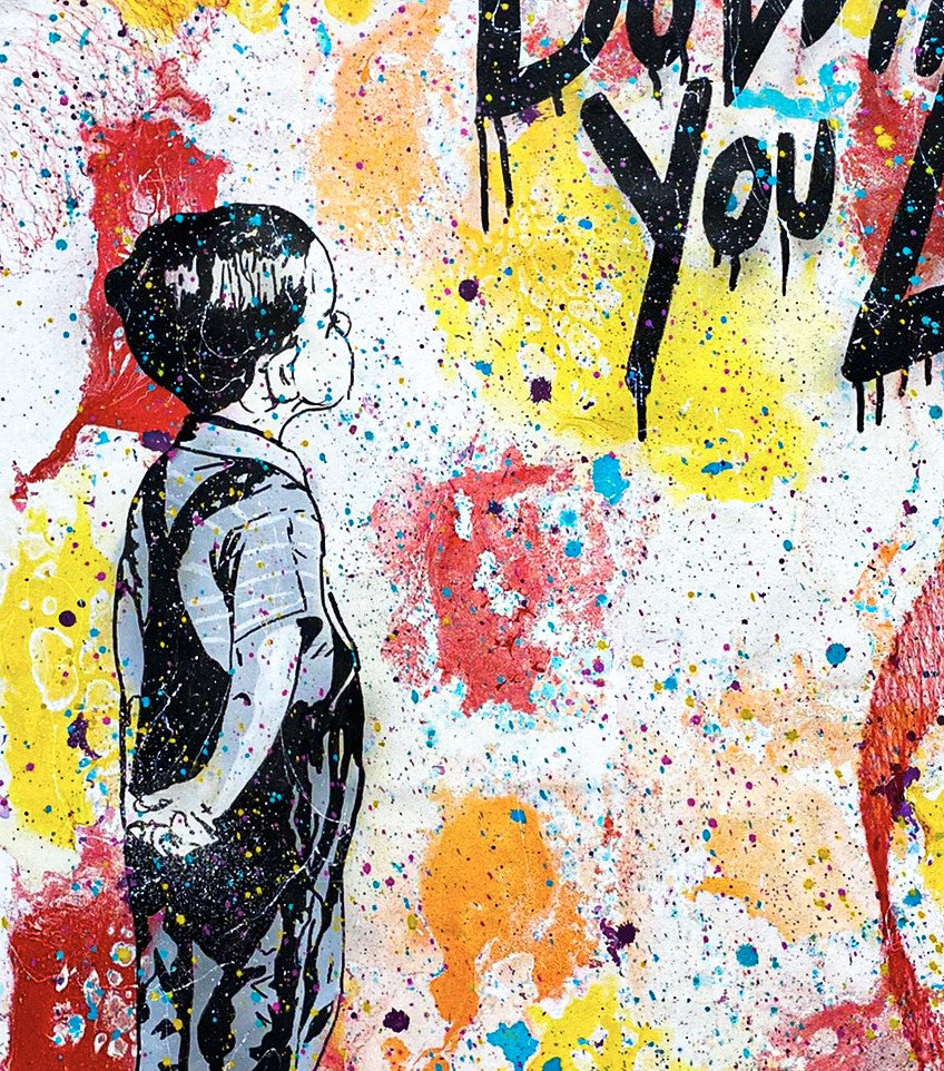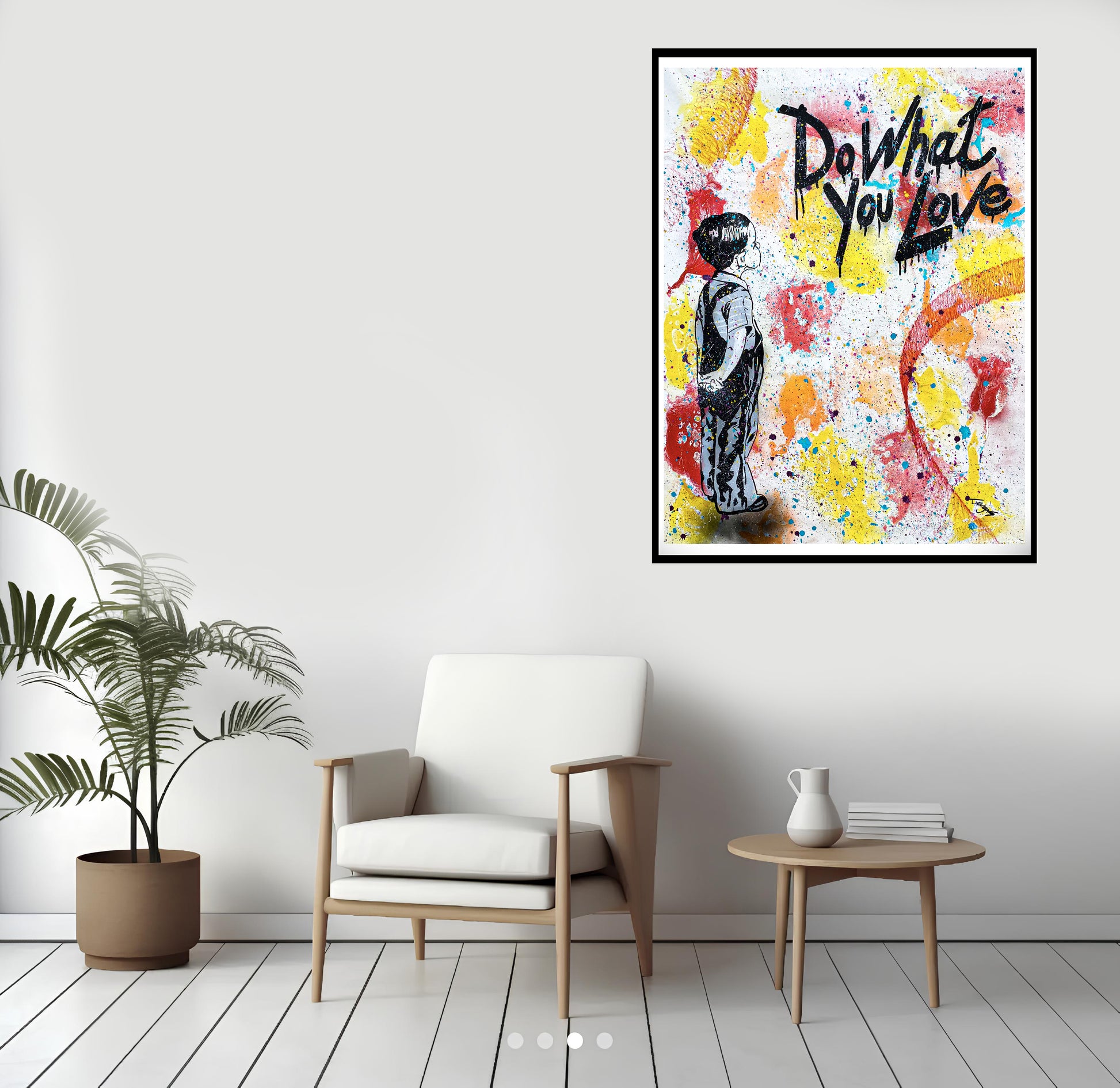- Giclée originale di un'opera d'arte Graffiti realizzata con bombolette spray, tecnica mista e un elemento d'amore segreto su cotone.
