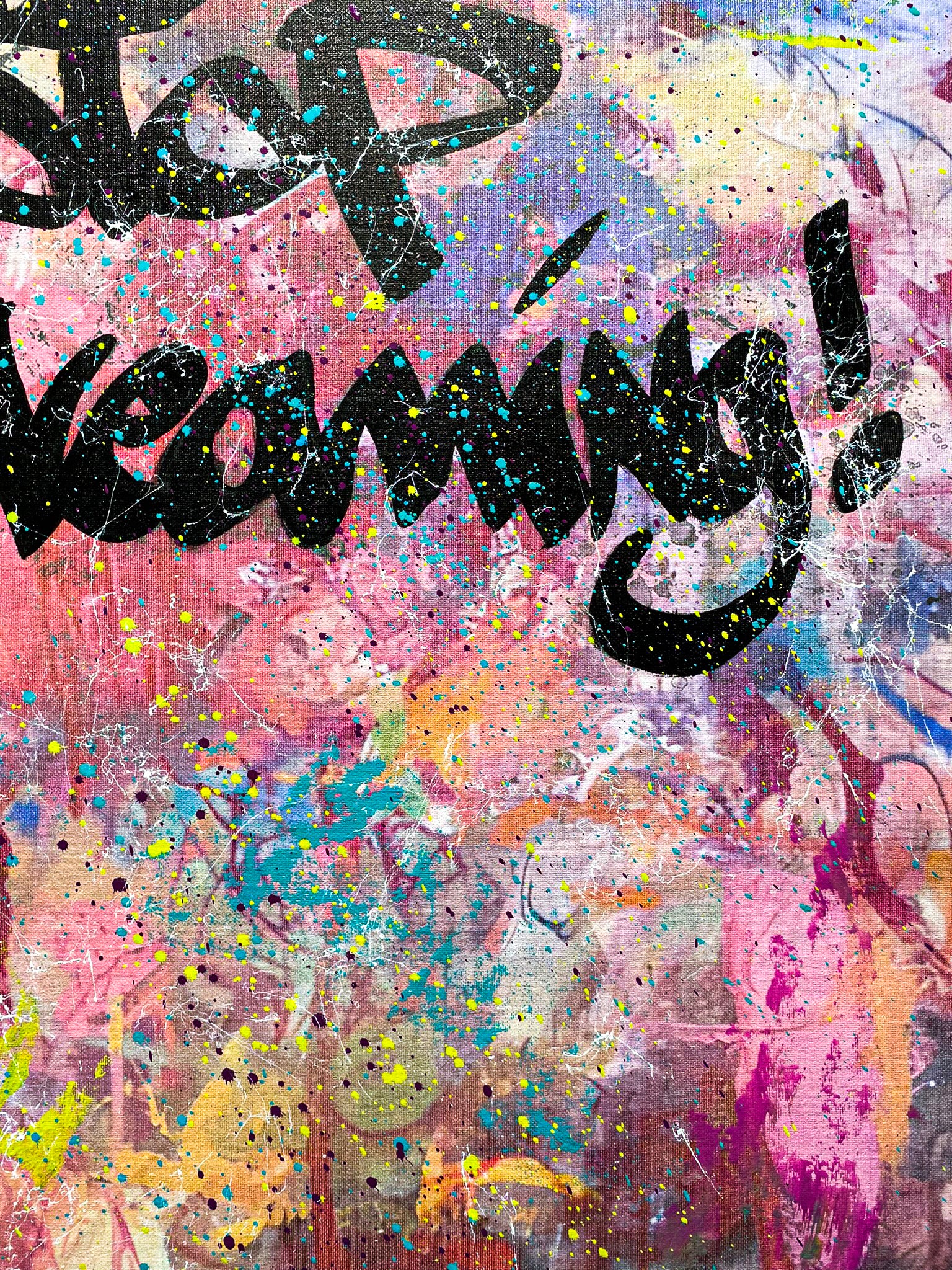 - Giclée originale di un'opera d'arte Graffiti realizzata con bombolette spray, tecnica mista e un elemento d'amore segreto su cotone.