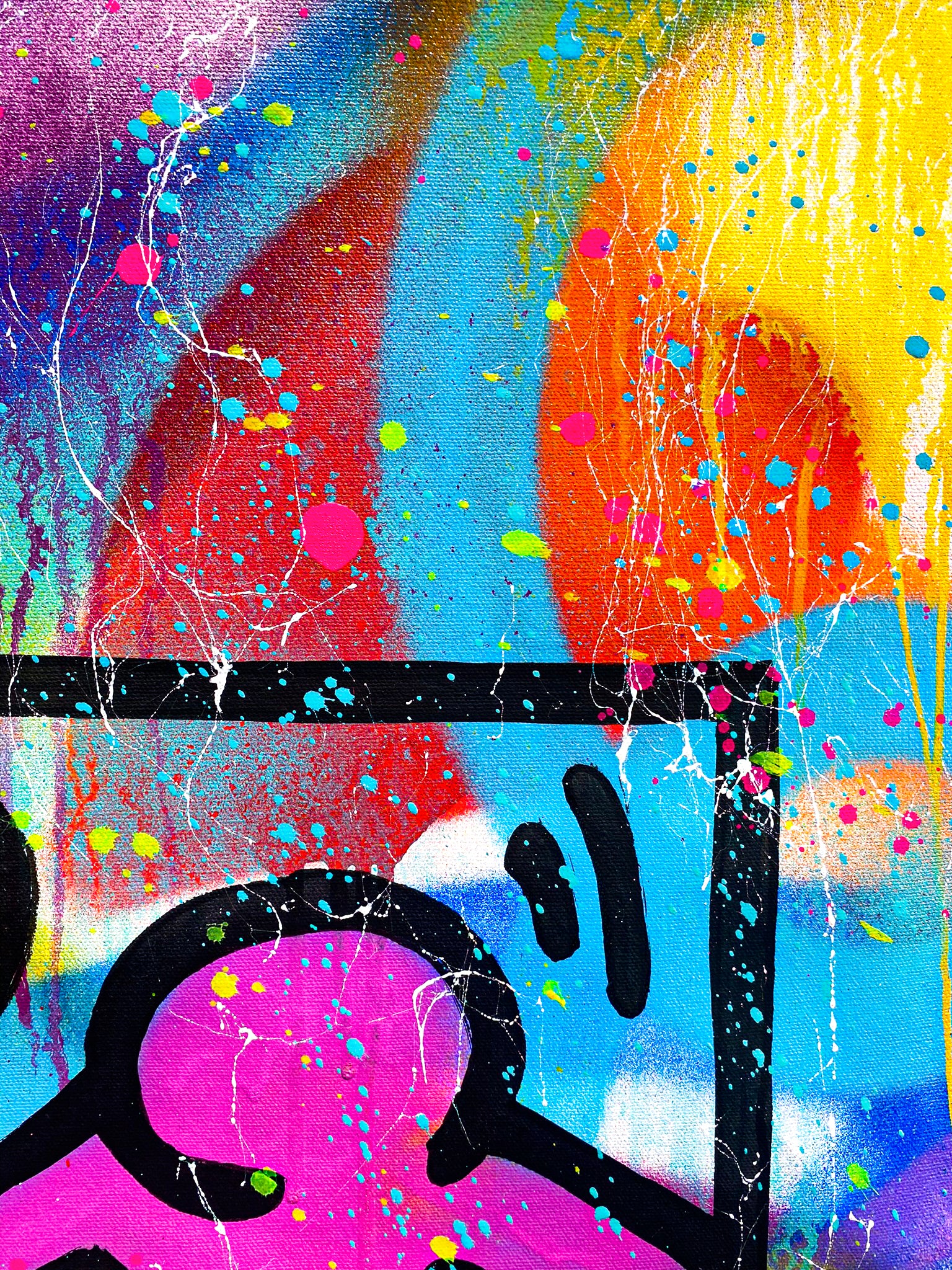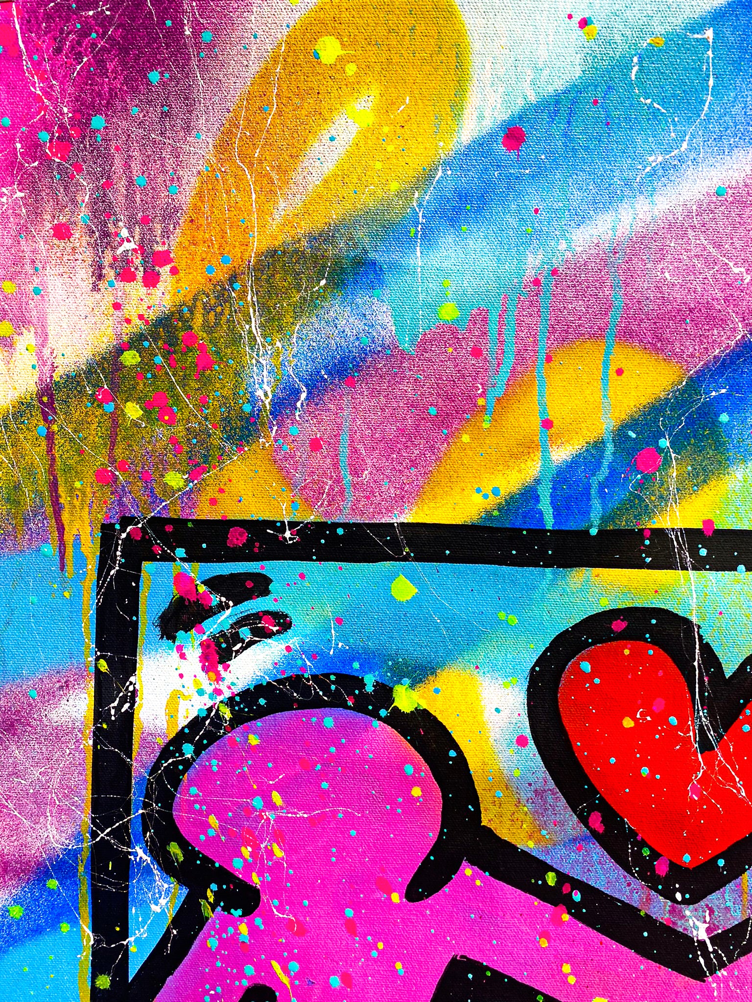- Giclée originale di un'opera d'arte Graffiti realizzata con bombolette spray, tecnica mista e un elemento d'amore segreto su cotone.