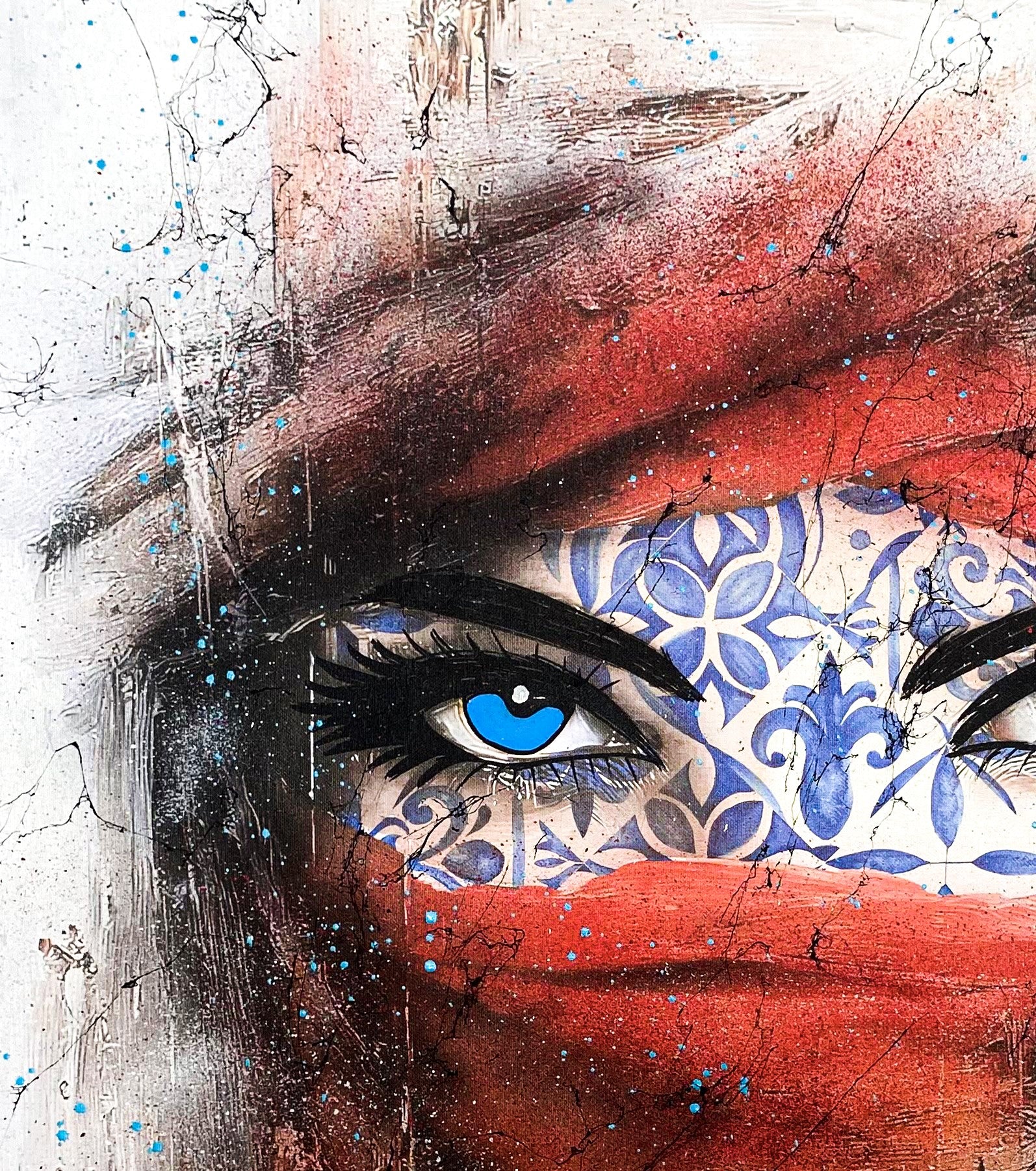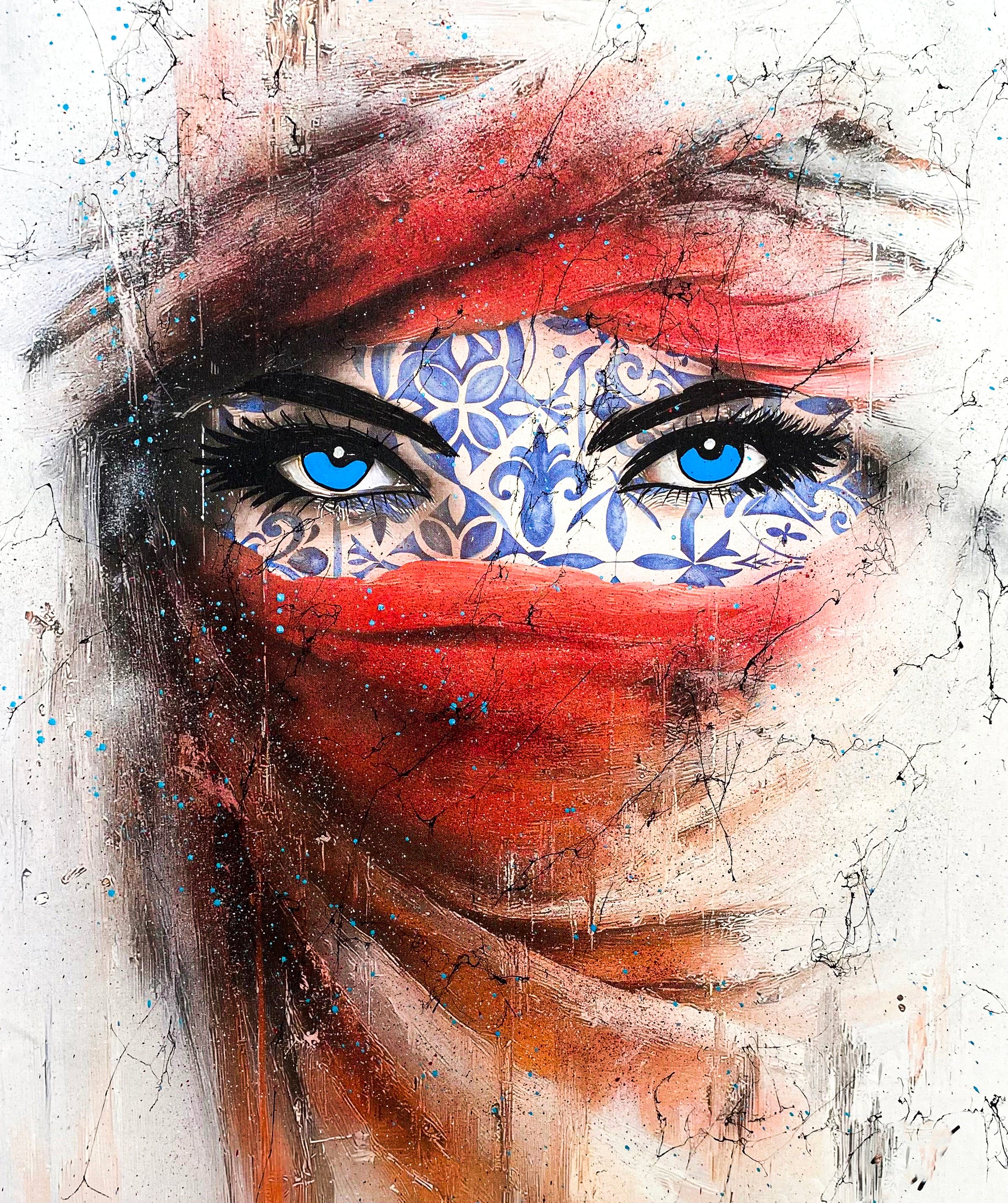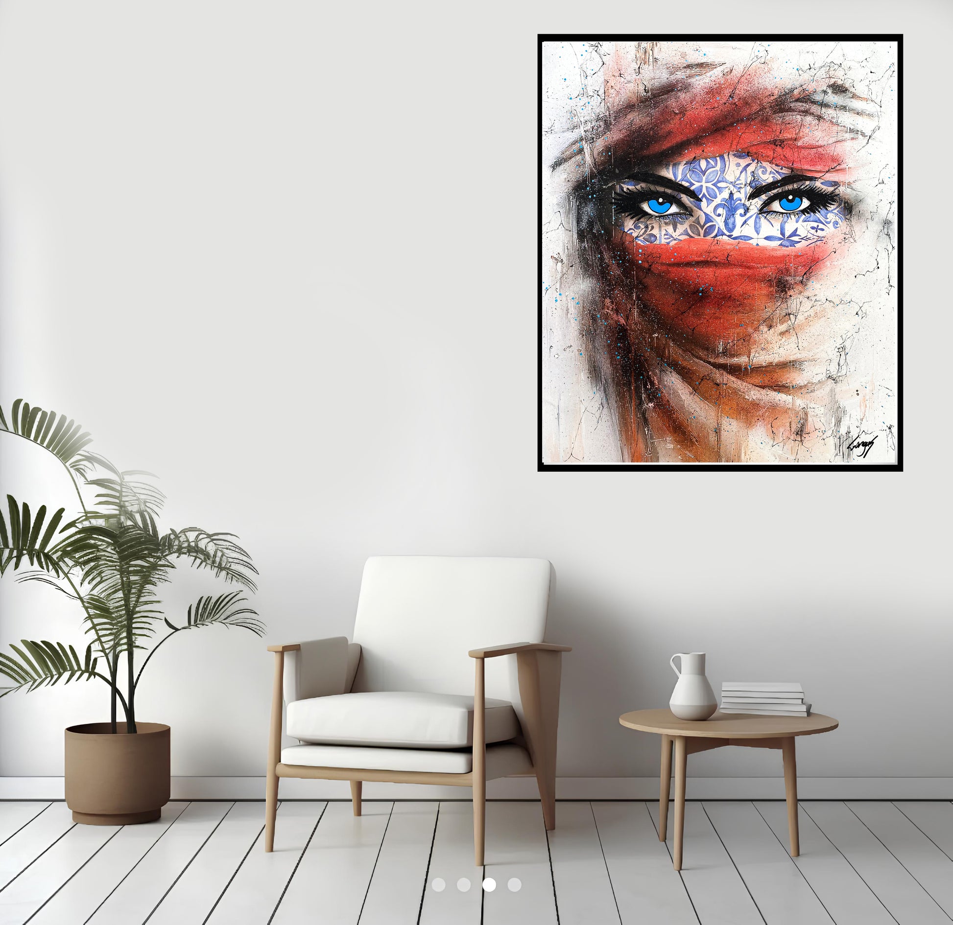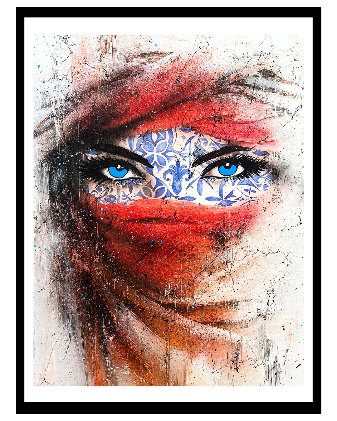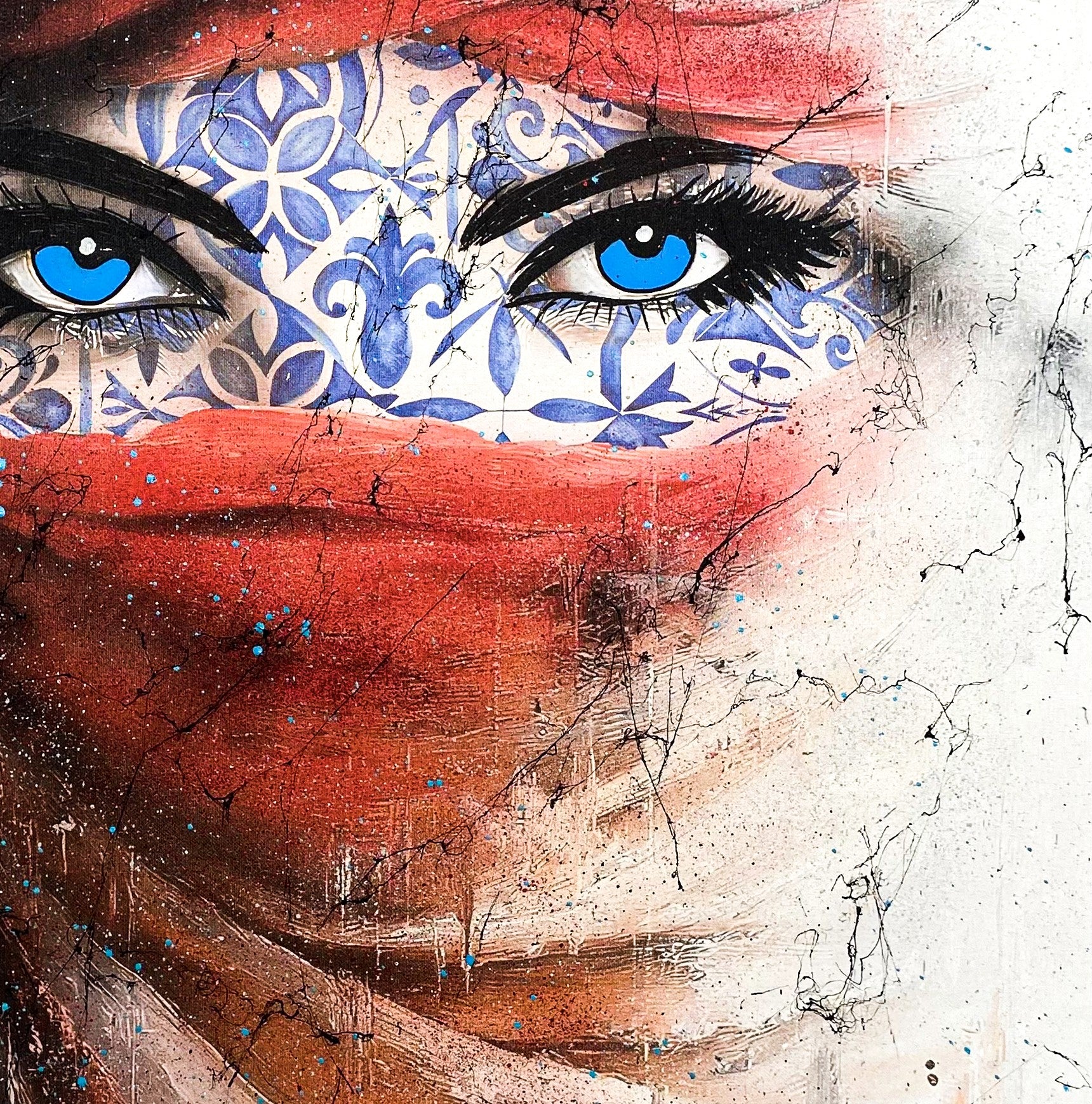 - Giclée originale di un'opera d'arte Graffiti realizzata con bombolette spray, tecnica mista e un elemento d'amore segreto su cotone.