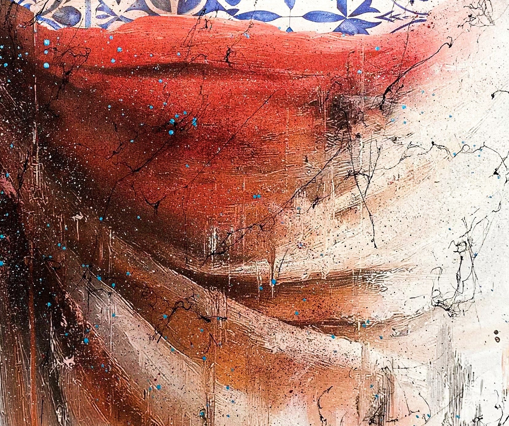 L'opera ha le sue texture, le sue colature, i suoi effetti polverizzati , così che ogni volta che viene realizzata può essere speciale e unica.